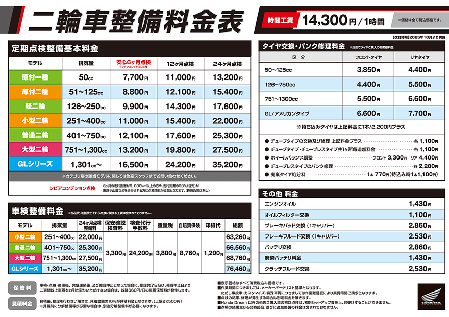 Honda Dreamで法令及びHondaが指定する点検整備実施した車両。